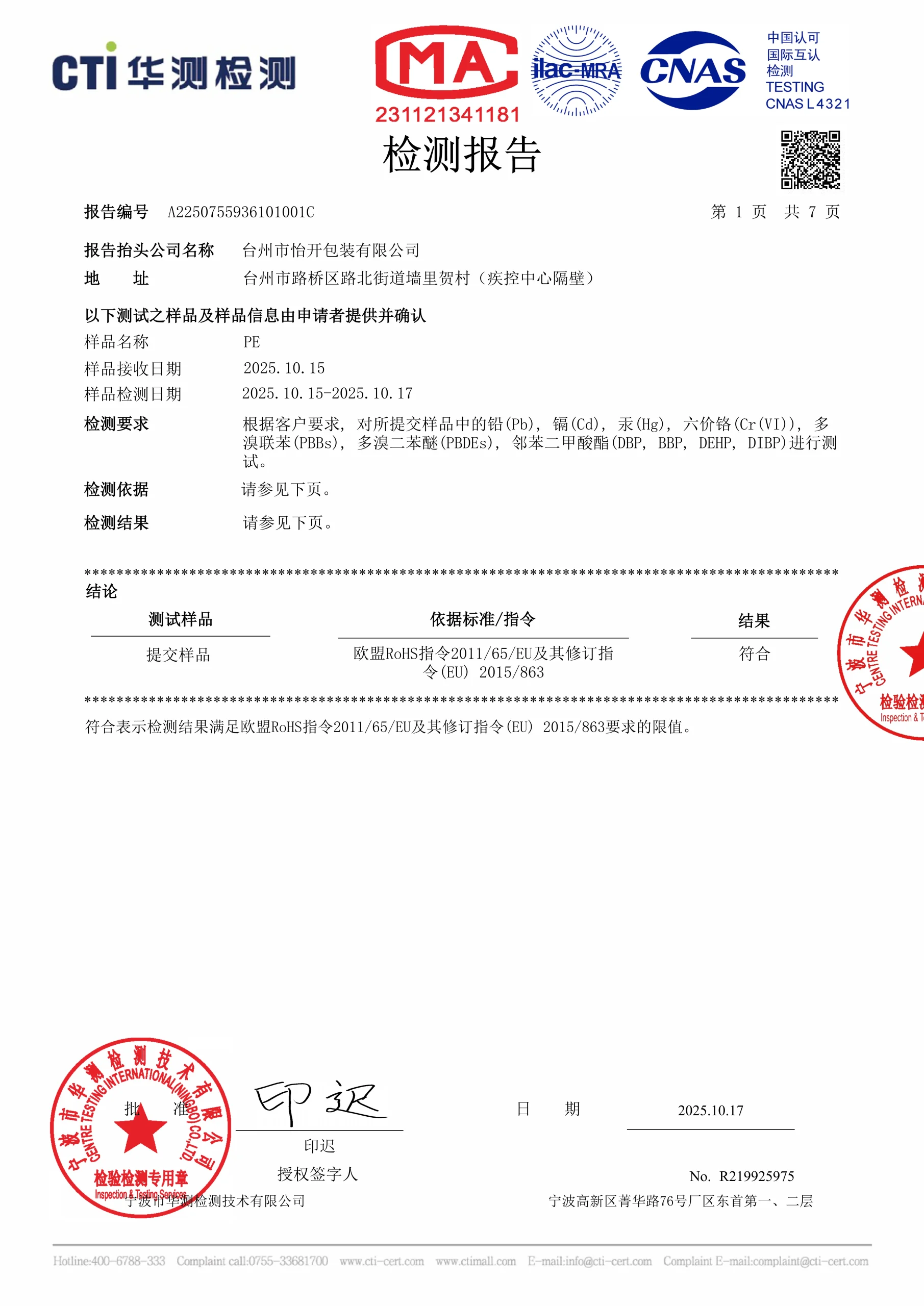 ООО Тайчжоу Икай Упаковка является многопрофильным предприятием, много лет углубленно работающим в сфере упаковки. С момента своего основания 5 августа 2009 года компания завоевала хорошую репутацию в отрасли благодаря профессиональному обслуживанию и высококачественной продукции. Компания расположена в деревне Цянлихэ цзе Лубэй района Луцяо города Тайчжоу (по соседству с Центром по контролю и профилактике заболеваний). Выгодное географическое положение не только удобно для закупки сырья и транспортировки продукции, но и обеспечивает удобство для общения и сотрудничества с клиентами. После многих лет развития сфера деятельности компании постоянно расширялась, сформировав промышленную структуру, охватывающую множество областей, включая полиграфическую печать упаковочной продукции, производство пластиковых упаковочных контейнеров и инструментов для пищевых продуктов, производство и продажу пластиковых изделий, производство бумажных и картонных контейнеров, продажу бумажных изделий, а также продажу химической продукции (за исключением лицензируемой химической продукции).