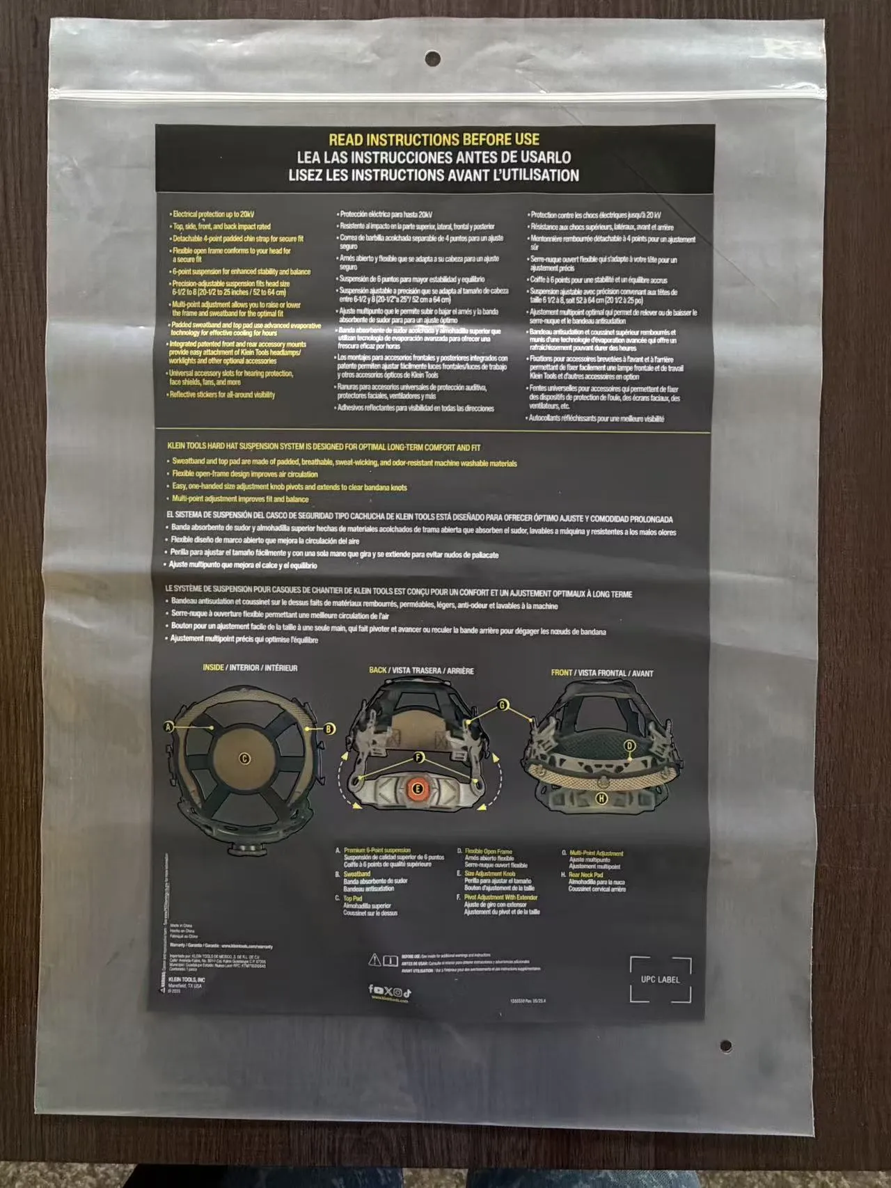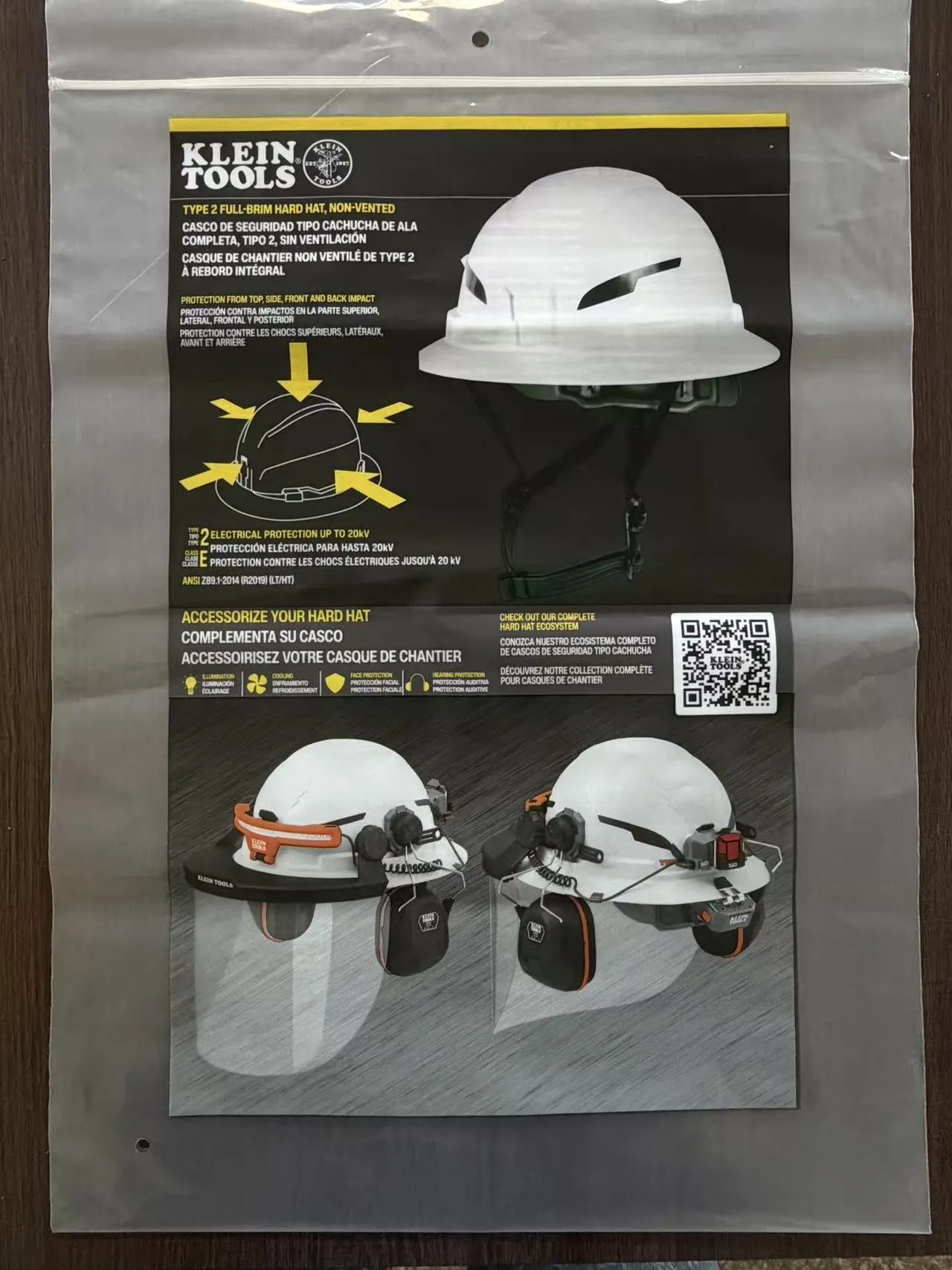 В данной индивидуальной упаковке использован высокопрозрачный композитный материал; на лицевой стороне четко представлена информация о каске, включая многоязычное описание продукта, схематическое изображение функций и логотип бренда, а на оборотной стороне — полное руководство по эксплуатации и схематическое изображение системы подвеса. Такой дизайн не только отвечает требованиям североамериканского рынка к визуальному представлению информации о продукте, но и соответствует стандартам внешней торговли в отношении многоязычной маркировки.